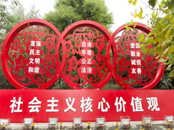 無論是在城市還是在鄉(xiāng)村,都需要文化去支撐我們不僅需要傳統(tǒng)文化,也需要當(dāng)代文化,而社會主義核心價值觀就是當(dāng)代先進(jìn)文化的典型代表,它渲染了一個地區(qū)的文化氣息,社會主義核心價值觀標(biāo)識牌在增添當(dāng)?shù)匚幕滋N方面具有不可小覷的功效。社會主義核心價值觀標(biāo)識牌的設(shè)計可從中國傳統(tǒng)文化的精粹中汲取社會主義核心價值觀標(biāo)識牌的設(shè)計靈感,從中提煉和凝結(jié)出一些設(shè)計元素和符號以應(yīng)用到社會主義核心價值觀標(biāo)識牌的設(shè)計工作當(dāng)中去。